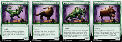 For this one I was asked to reference a different type of creature that had also been previously represented under the "Beast" creature type. For this one, I wanted to take advantage of the poofy Gnarlid fur and have the creature done-up like a poodle. And, if a poodle had horns, it would probably use them for scratching hard to reach places.